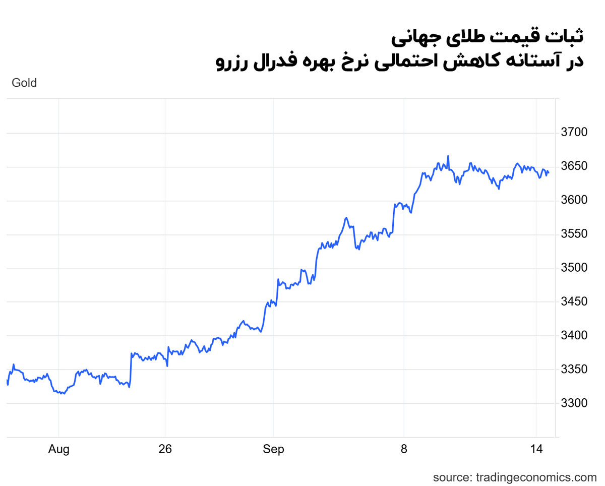 قیمت لحظهای اونس طلا تا ساعت 11:20 دقیقه به وقت تهران به 3,642.63 دلار رسید. قیمت طلای جهانی هفته گذشته با رشد 1.6 درصدی همراه شد و روز سه شنبه رکورد 3,673.95 را ثبت کرد.
